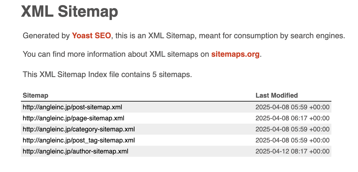 - XMLサイトマップ:検索エンジン(Googleなど)が見るためのページ一覧